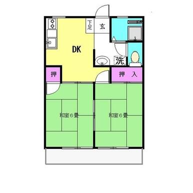 | 間取り | 2DK(和室6畳/洋室6畳/DK6畳) | 主要採光面 | 南 |