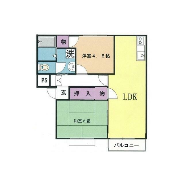 2LDK(和室6畳/洋室4.5畳/LDK11畳) |