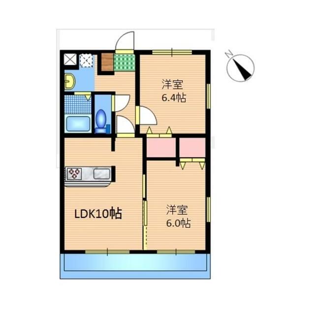 | 間取り | 2LDK(洋室6畳/洋室6.4畳/LDK10.2畳) | 主要採光面 | 南西 |