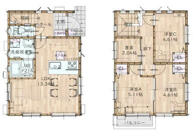 | 間取り | 3SLDK(洋室5.1畳/洋室4.6畳/洋室4.6畳/LDK13.3畳/) | 主要採光面 | 南 |